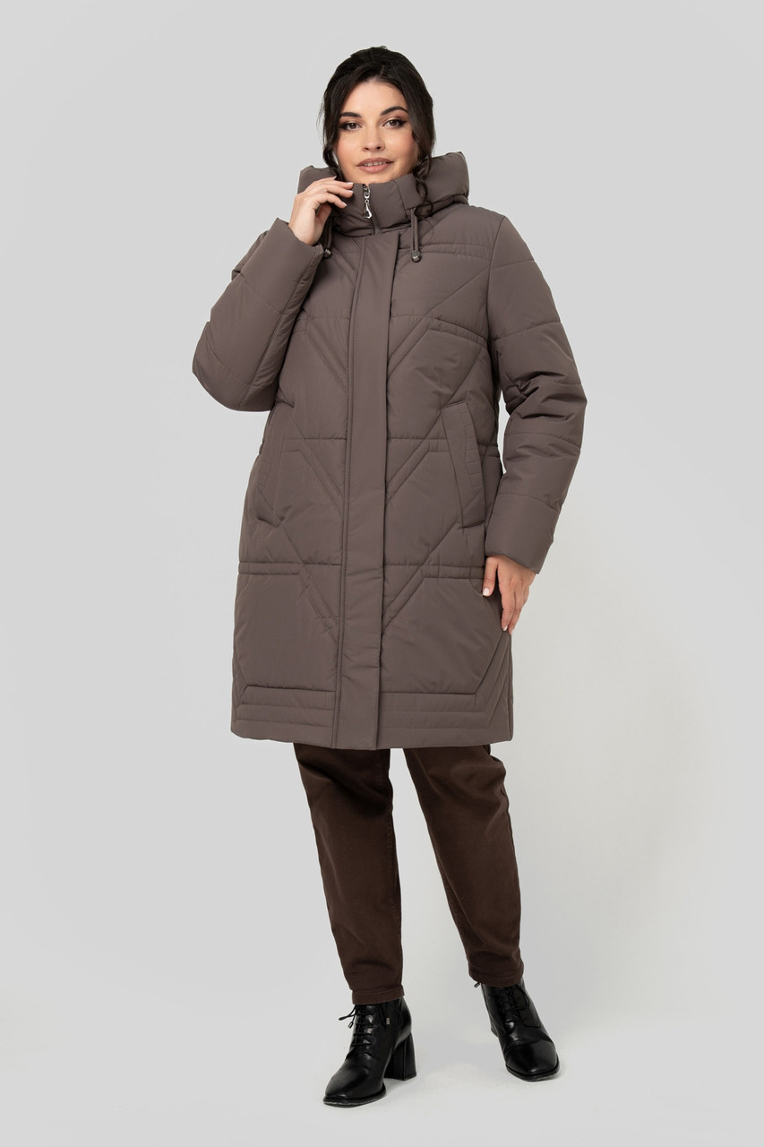 Жіноче зимове пальто прямого крою створене для комфорту у холодний сезон. Матовий плащовий матеріал на мембранній основі має водовідштовхувальне покриття, що забезпечує захист від опадів і вітру. Наповнювач тінсулейт (200+60 г/м²) гарантує тепло до -23 °C. Вшивні двошовні рукави з м’якими трикотажними манжетами, стильні кишені з фігурною листочкою, а також капюшон, що регулюється фіксаторами, роблять модель практичною і елегантною. Застібка — блискавка з планкою на кнопках. Підкладка виготовлена з нейлону.